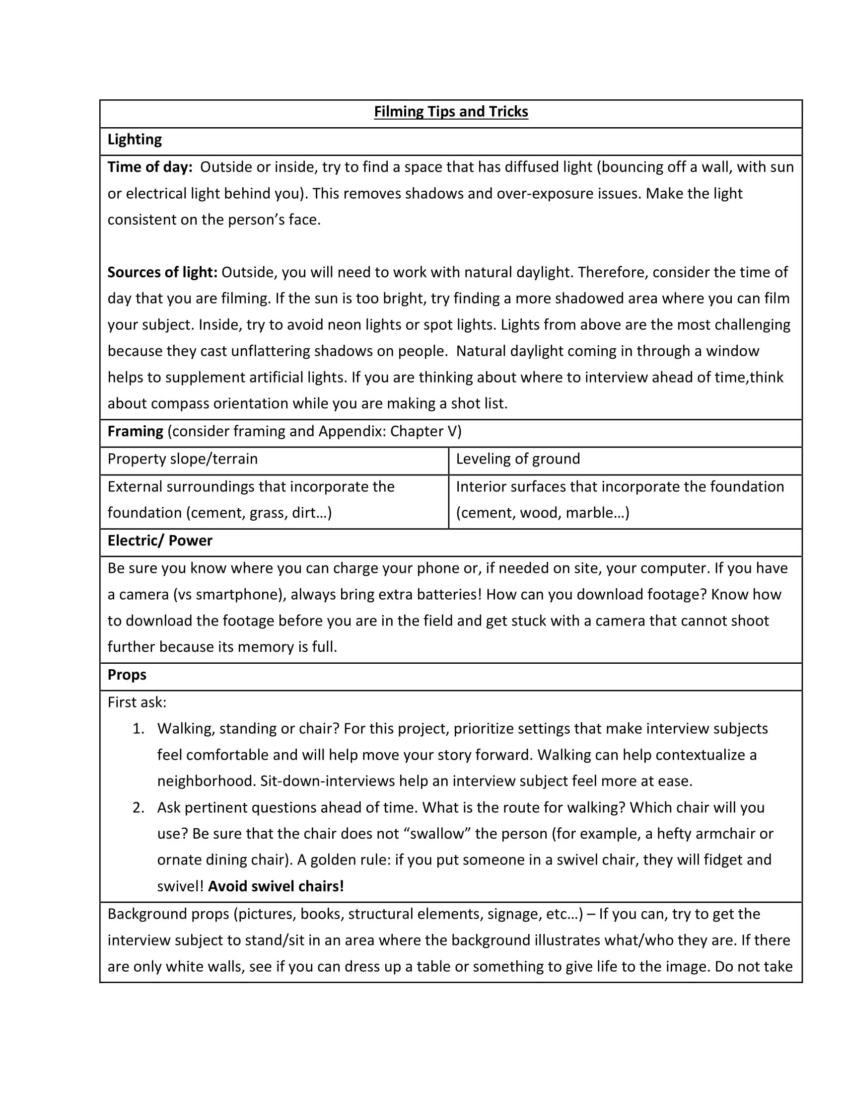 For a printable PDF of “Filming Tips and Tricks,” please download it here.